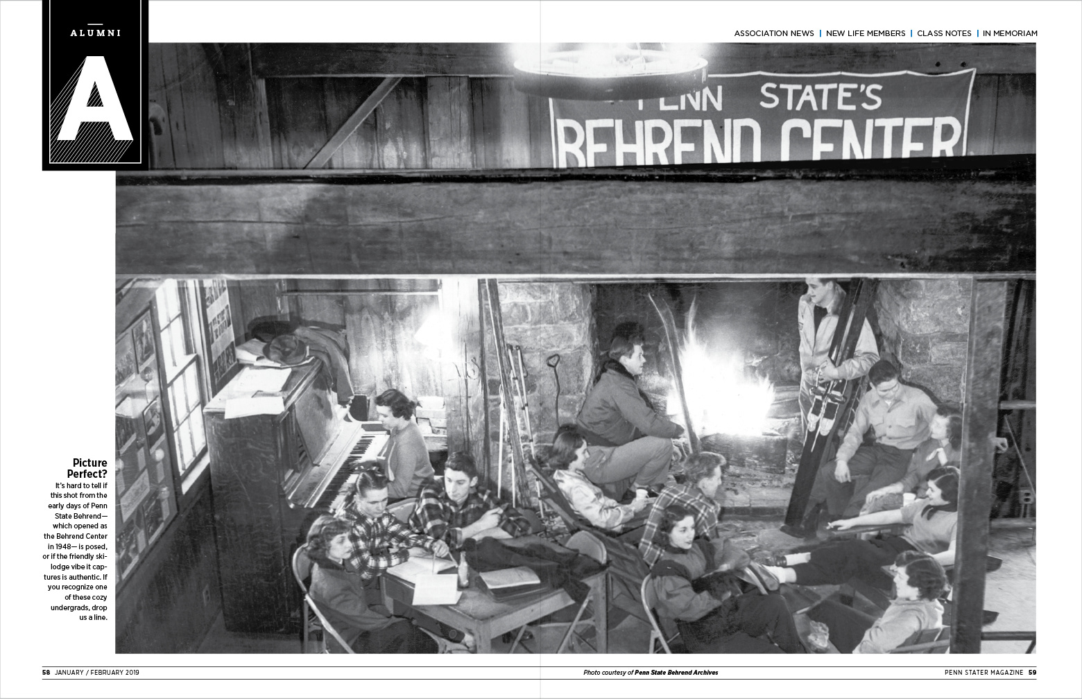 The redesign consisted of reworking the size of the magazine, fonts, section openers, front and back of book layout, and photography. Front of Book: Our team decided to create three section openers with spread-worthy eye capturing photography that would best represent our Pulse, Sports, and Alumni section. The Pulse and Sports openers provide an opportunity to showcase local photographer work and the Alumni section is a great way to dig up historical photos from the University Archives. The Pulse and Sports sections incorporate more shorter pieces that break up the front of book and add more visual and diverse opportunities for our readers. Back of Book: This includes Class Notes, New Life Members, and In Memoriam. With our redesign, Class Notes has more freedom to incorporate social media findings, new book, and provides more white space for the eye. New Life Members uses Michael Chesworth's famous lion illustrations to bring nostalgia and character to the spread. To keep portraits consistent in the In Memoriam section, Randy Glass illustrates very detailed caricatures to honor those who have passed.